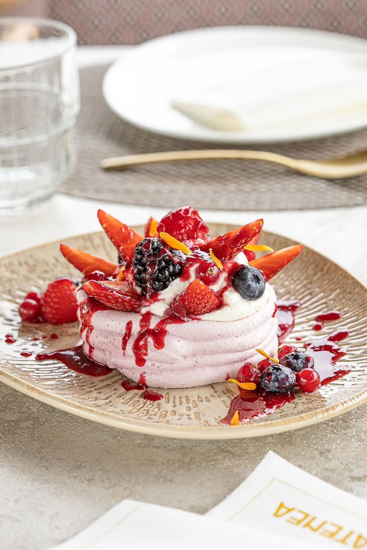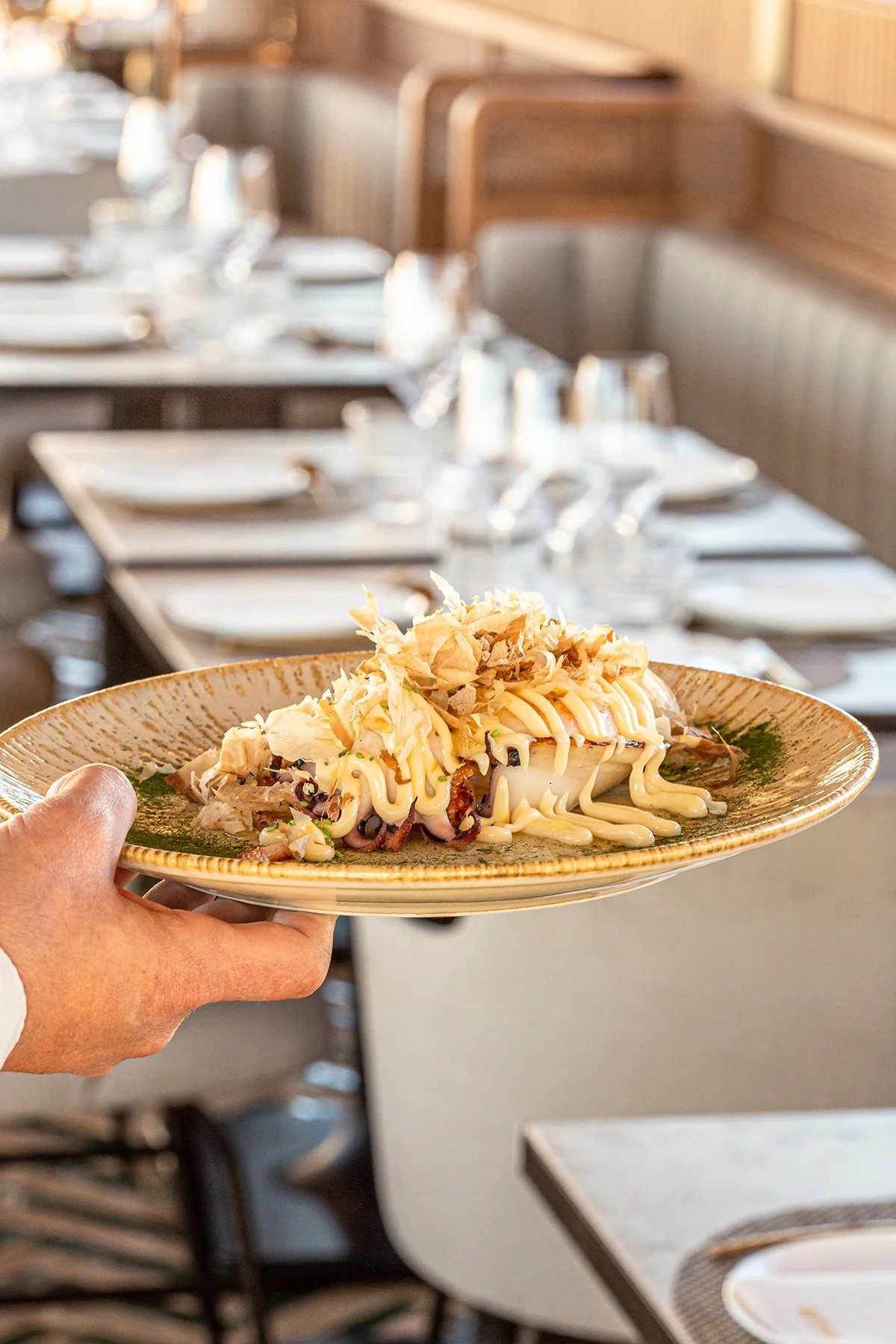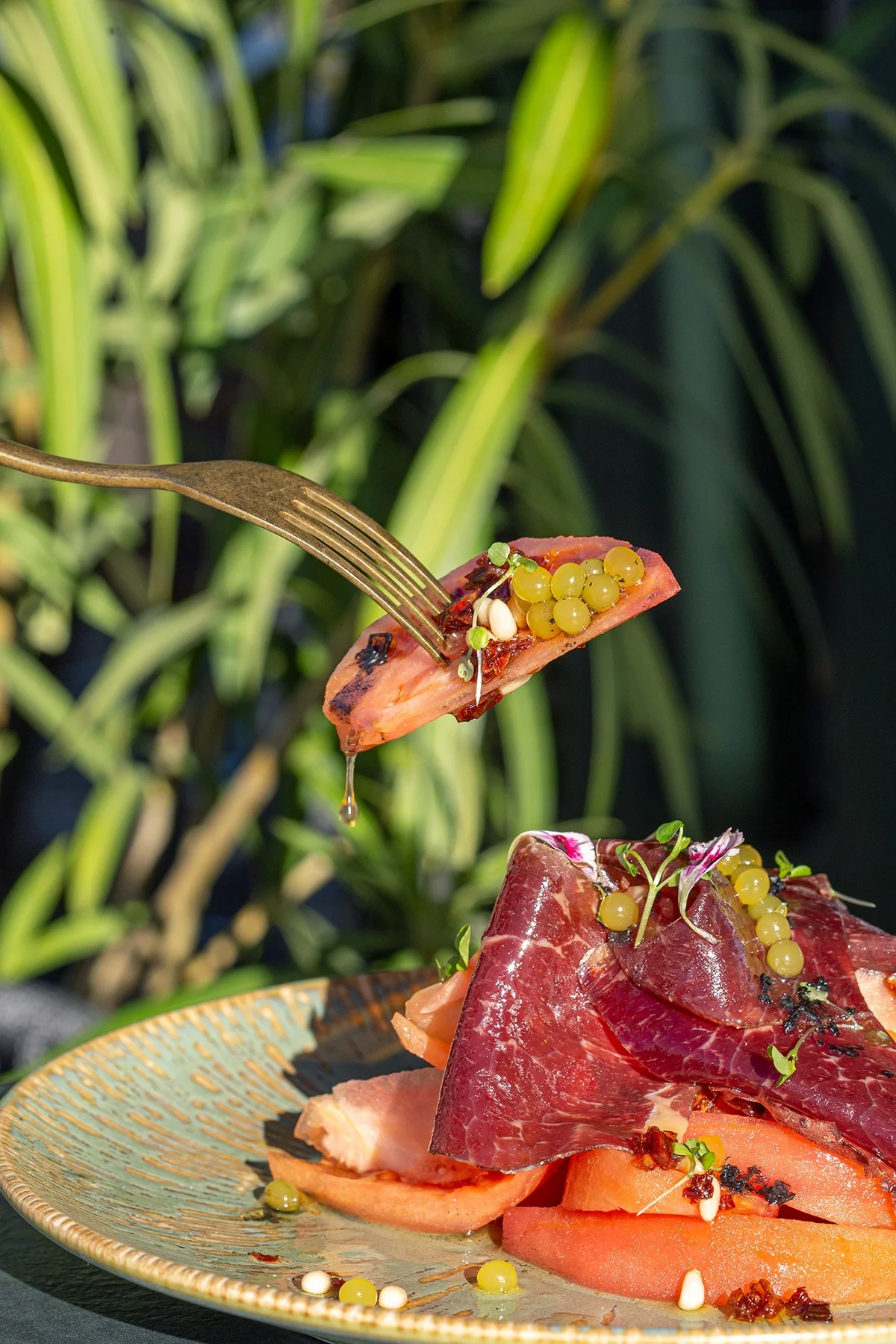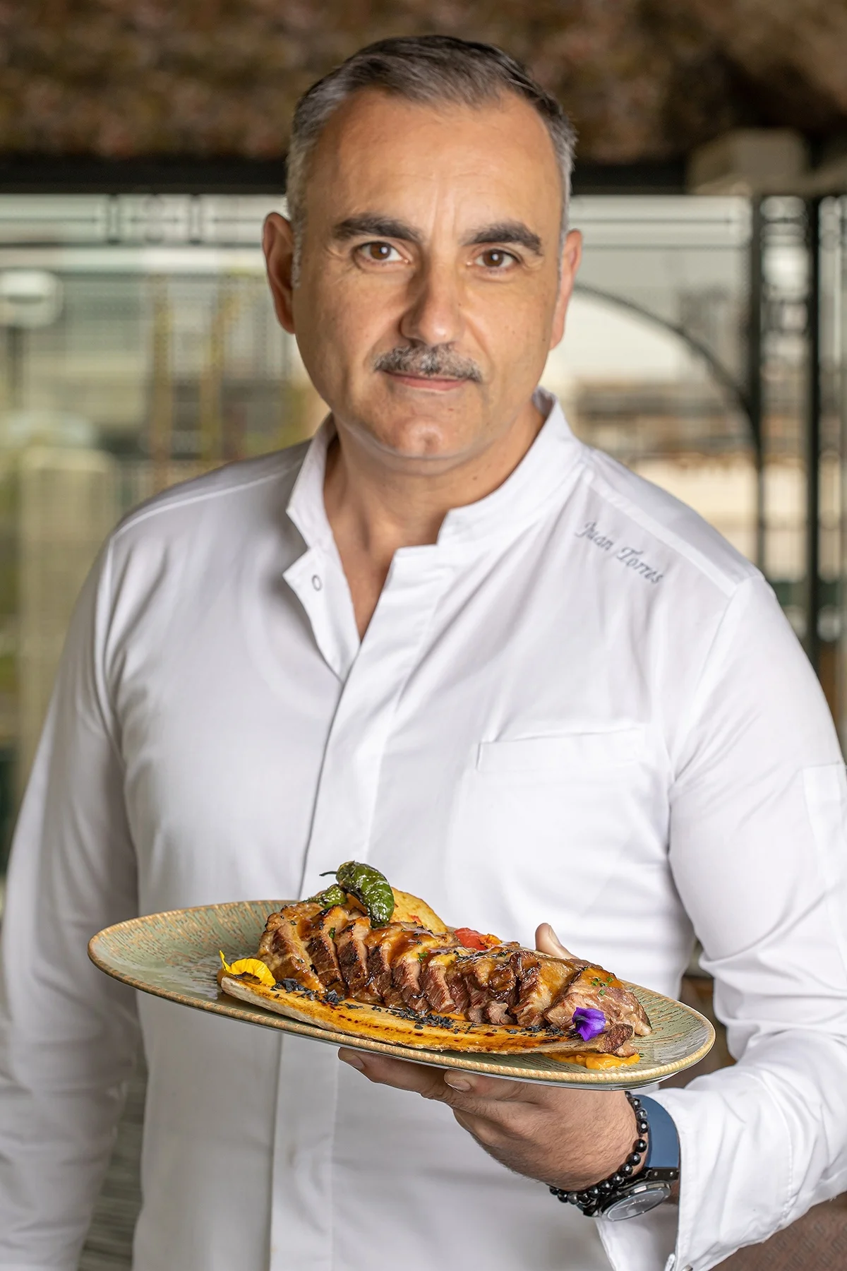 Cordero Lechal al Estilo del Chef Juan Torres y del Bacalao con Mullaor de Mini Tomates, maridados con cócteles de autor como el Agua de Atenea. Termina con el Valenciano, una torrija de orxata con helado de leche merengada, todo con vistas 360º